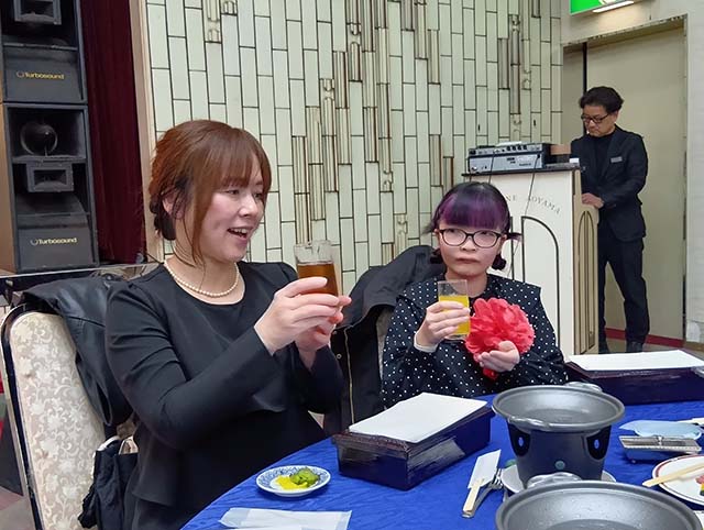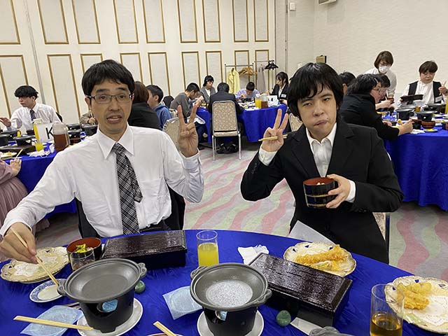 入所式の後は、歓迎会♪美味しい食事をいただきながら、親睦を深めました。(*´▽`*)