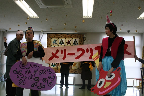 所員によるパフォーマンスです。オリンピックをテーマに仮装大賞風になってます。