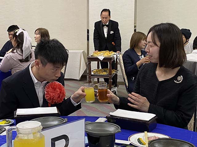 入所式の後は、歓迎会♪美味しい食事をいただきながら、親睦を深めました。(*´▽`*)